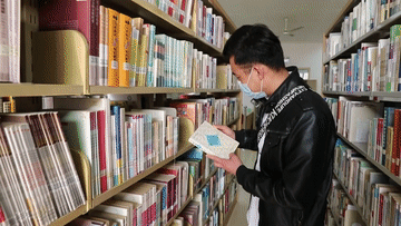 ↑馬文軒在學(xué)校圖書(shū)館里看醫書(shū)。