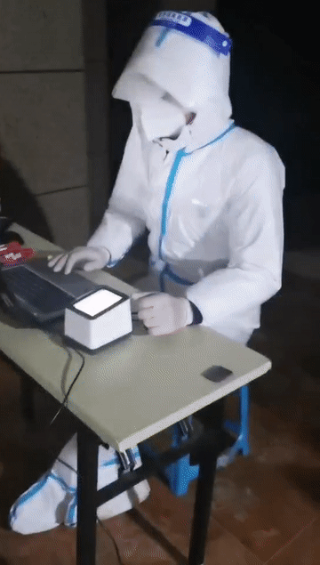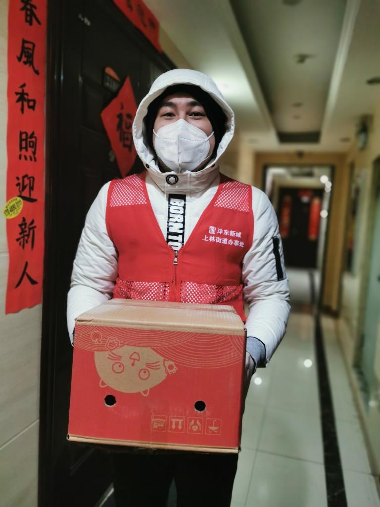 ↑馬文軒在寒夜里支援小區抗擊疫情。