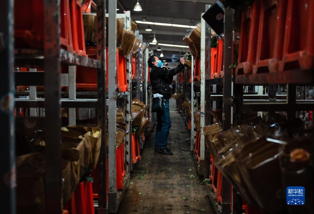 1月21日,質(zhì)檢員在昆明國際花卉拍賣(mài)交易中心內對鮮花進(jìn)行質(zhì)量檢驗。新華社記者 王冠森 攝