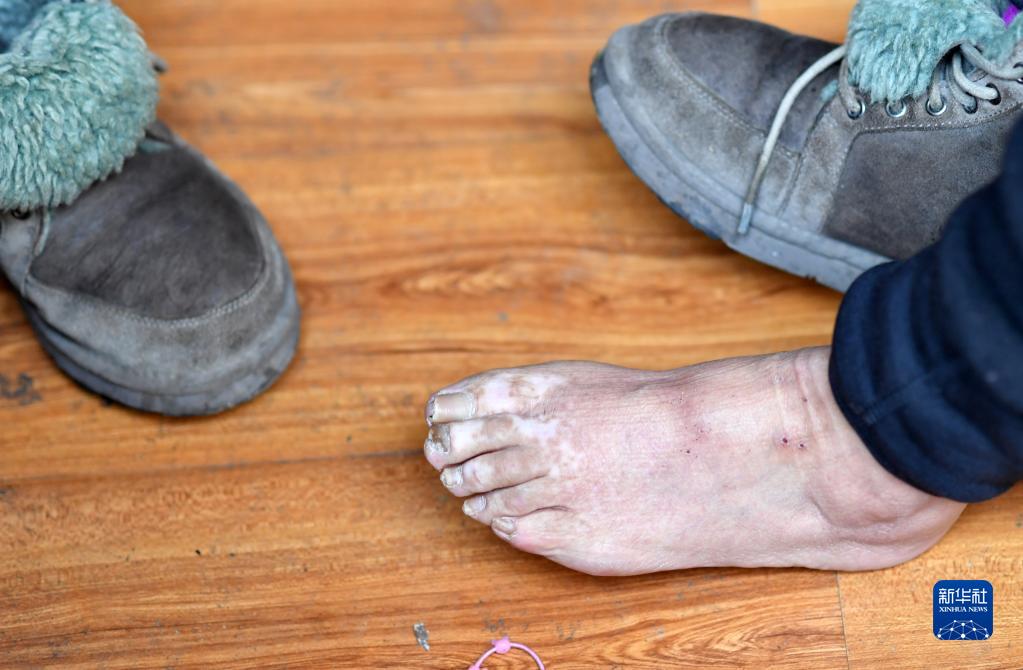 達吉阿媽的身上,如今仍留有送菜時(shí)的凍傷(1月26日攝)。新華社記者 覺(jué)果 攝