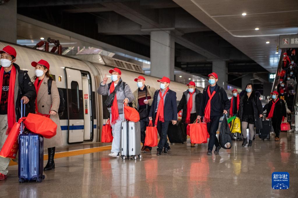2月16日,返崗務(wù)工人員在重慶西站乘車(chē)。新華社記者 唐奕 攝