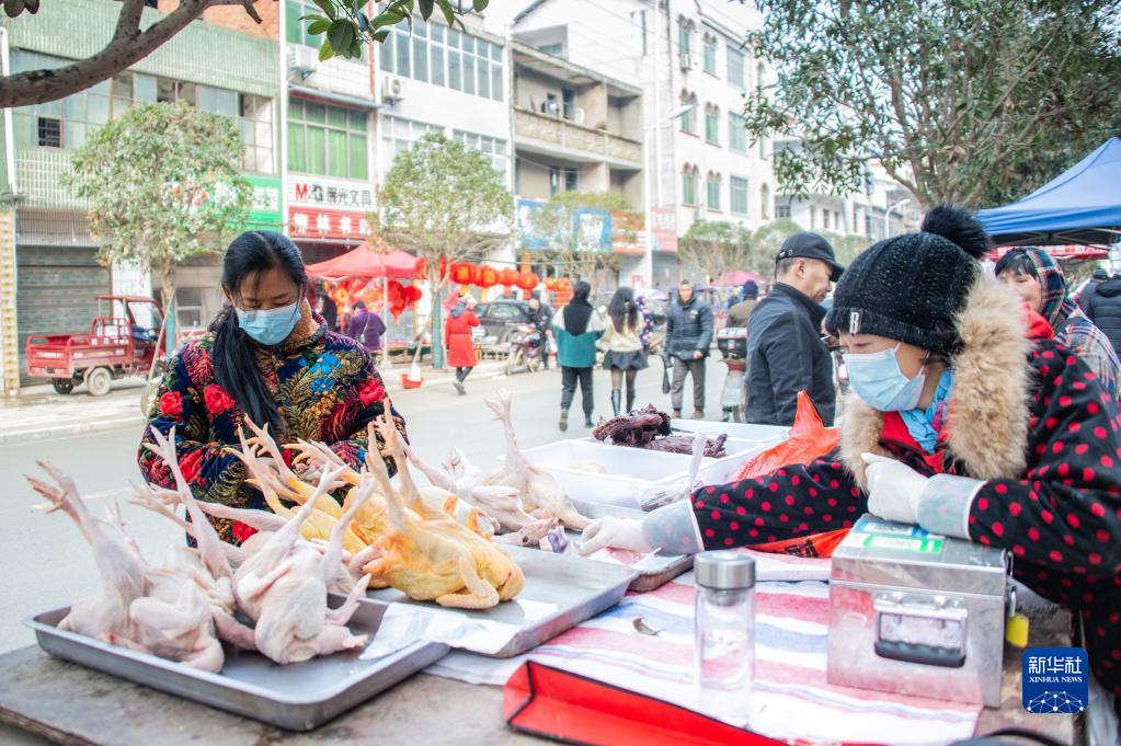 1月29日,在湖北省隨縣柳林鎮主街道上,人們在選購年貨。新華社發(fā)(伍志尊 攝)