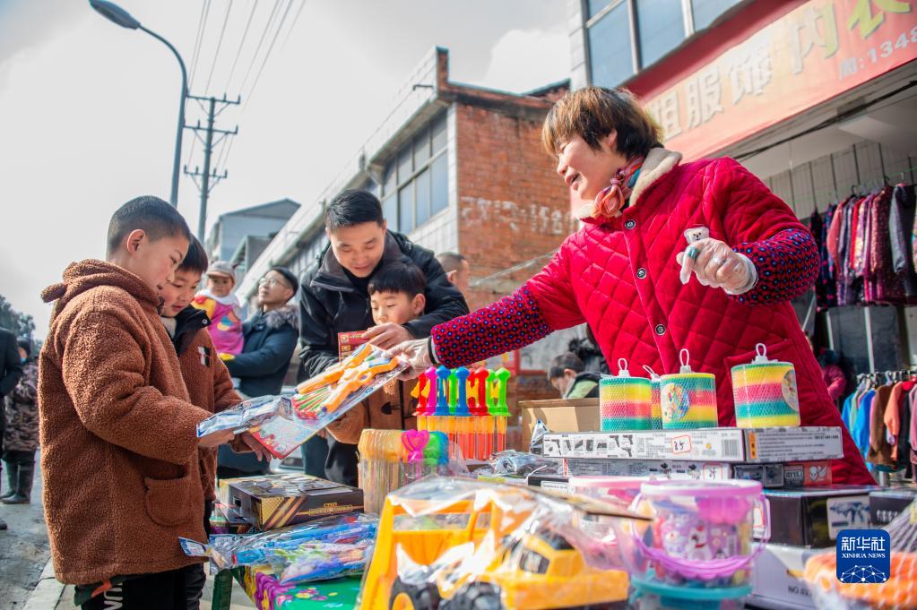 1月29日,小朋友在湖北省隨縣柳林鎮街頭的一個(gè)玩具攤前選購玩具。新華社發(fā)(伍志尊 攝)