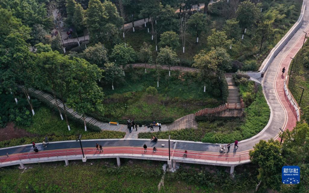 這是2月15日拍攝的位于重慶市大渡口區的重鋼崖線(xiàn)山城步道附近景色(無(wú)人機照片)。新華社記者 王全超 攝