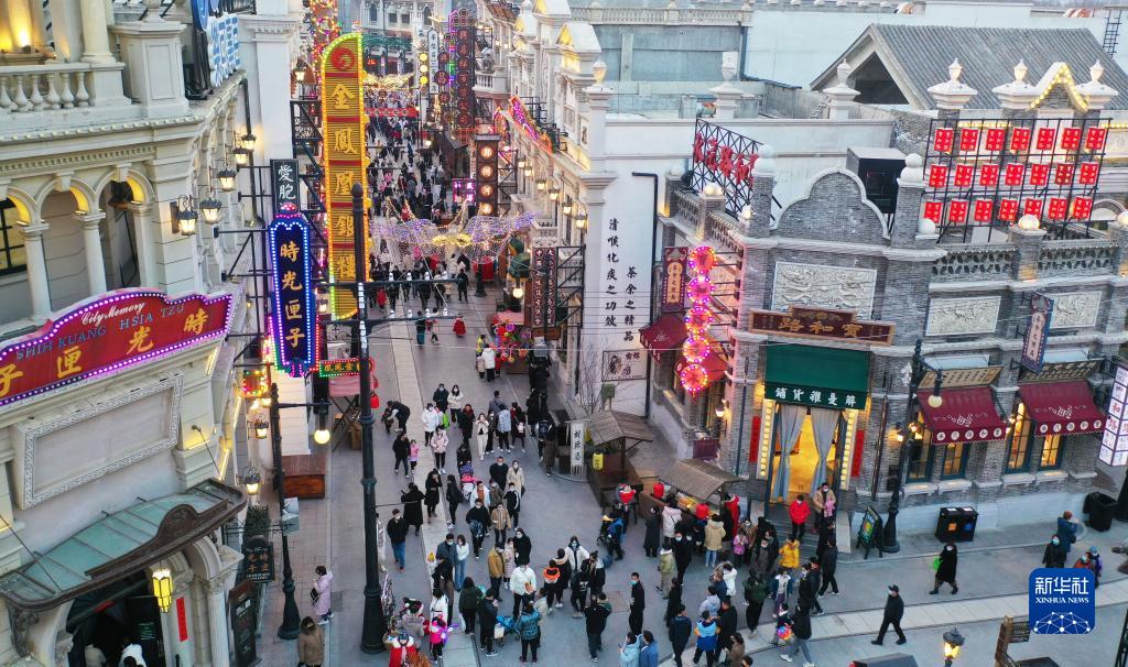 2月5日,游客在河南鄭州建業(yè)·華誼兄弟電影小鎮游覽(無(wú)人機照片)。新華社記者 張浩然 攝