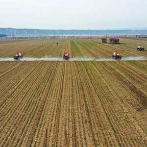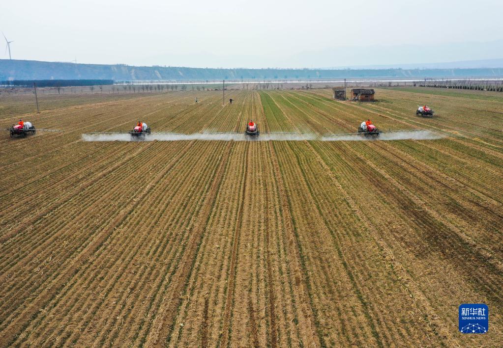 黃河灘地邊,孕育著(zhù)萬(wàn)畝麥田,十多輛高地隙植保車(chē)齊頭并進(jìn),噴灑著(zhù)葉面肥和植物生長(cháng)調節劑,讓急需營(yíng)養的小麥苗飽嘗甘霖?!巴赀@個(gè)時(shí)節,老百姓只需要打除草劑,今年得多打兩次肥料?!鄙轿魇∵\城市芮城縣農機手孫亞新說(shuō)。