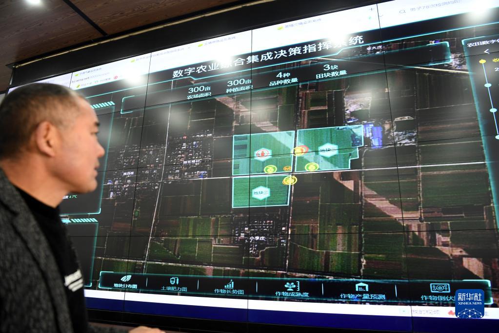2月11日,安徽省亳州市譙城區趙橋鄉“無(wú)人農場(chǎng)”工作人員通過(guò)“農場(chǎng)大腦”監控麥田情況。新華社記者 劉軍喜 攝