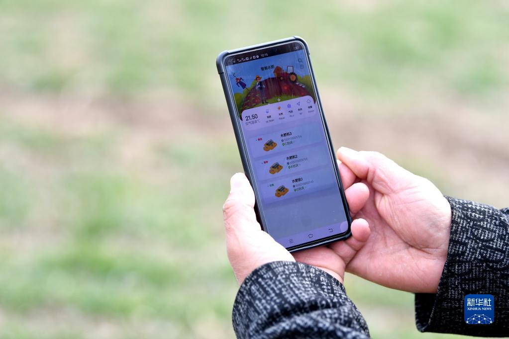 2月11日,安徽省亳州市譙城區趙橋鄉“無(wú)人農場(chǎng)”工作人員通過(guò)手機查看水肥系統運行狀況。新華社記者 劉軍喜 攝