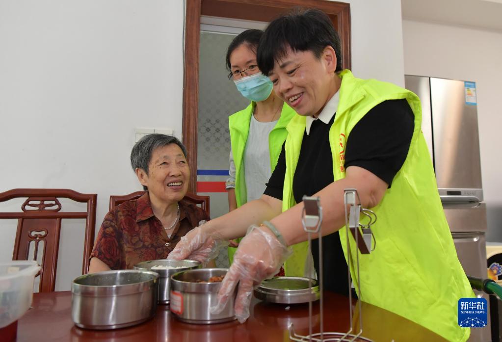 在江西省南昌市東湖區彭家橋街道文教路北社區,“幸福食堂”的義工在給社區內出行困難的老人提供送餐服務(wù)(2020年7月29日攝)。從2018年12月起,南昌市東湖區彭家橋街道在社區打造以黨建引領(lǐng)、社區主導、愛(ài)心企業(yè)贊助的“幸福食堂”,專(zhuān)門(mén)為社區獨居、孤寡及生活困難的老年人提供營(yíng)養餐,以此進(jìn)一步完善社區居家互助養老服務(wù)。新華社記者 彭昭之 攝
