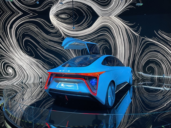 這是2021年10月1日拍攝的世博會(huì )中國館未來(lái)概念汽車(chē)板塊的展覽。新華社記者 蘇小坡 攝