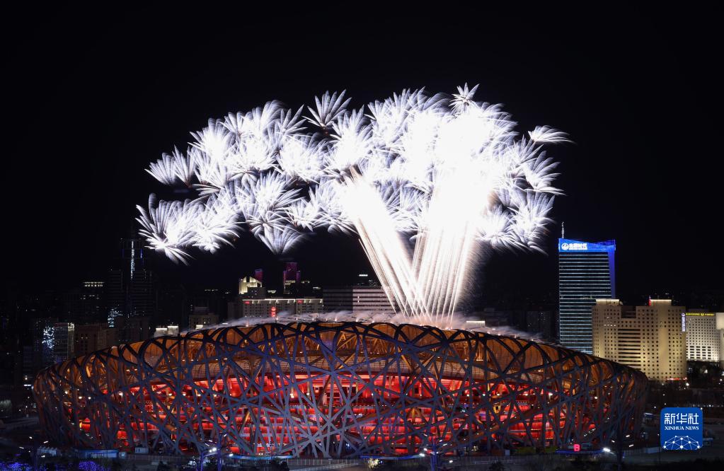 在第二十四屆冬季奧林匹克運動(dòng)會(huì )開(kāi)幕式上,焰火綻放在北京國家體育場(chǎng)上空(2022年2月4日攝)。新華社記者 盧燁 攝