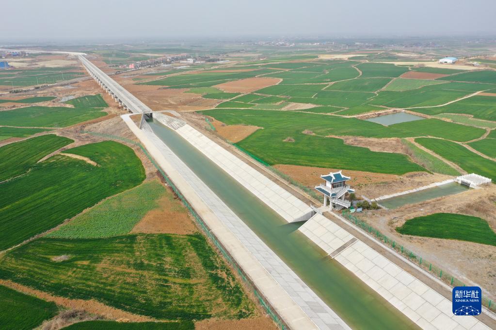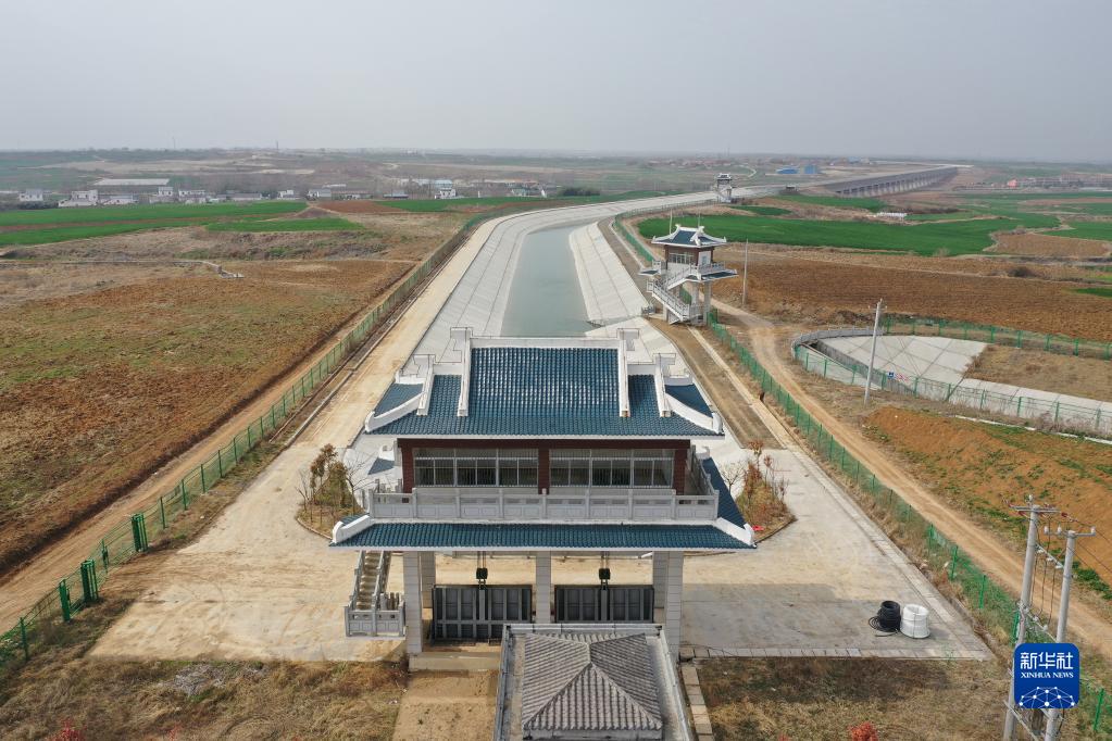 鄂北地區水資源配置工程為湖北省棗陽(yáng)市境內的農田灌溉送水(3月2日攝,無(wú)人機照片)。新華社發(fā)(鐘華 攝)
