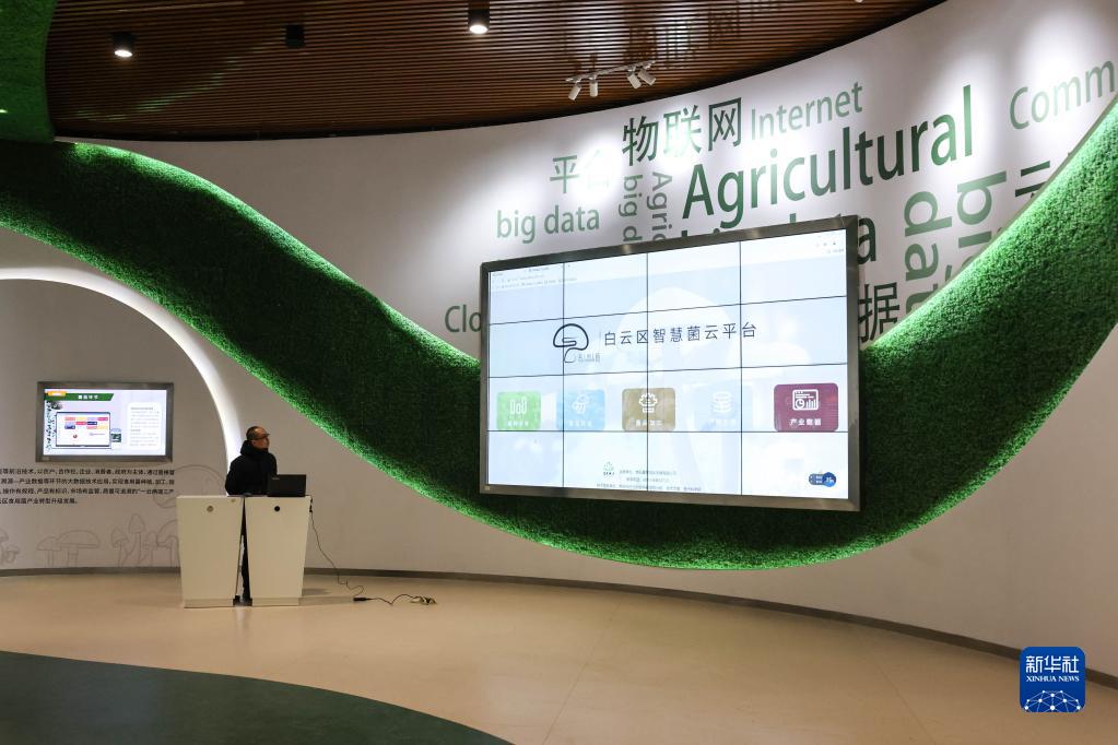 工作人員在貴陽(yáng)市白云區貴州菌菇博物館內使用“智慧菌云平臺”查看菌菇資料(2月14日攝)。新華社記者 歐東衢 攝