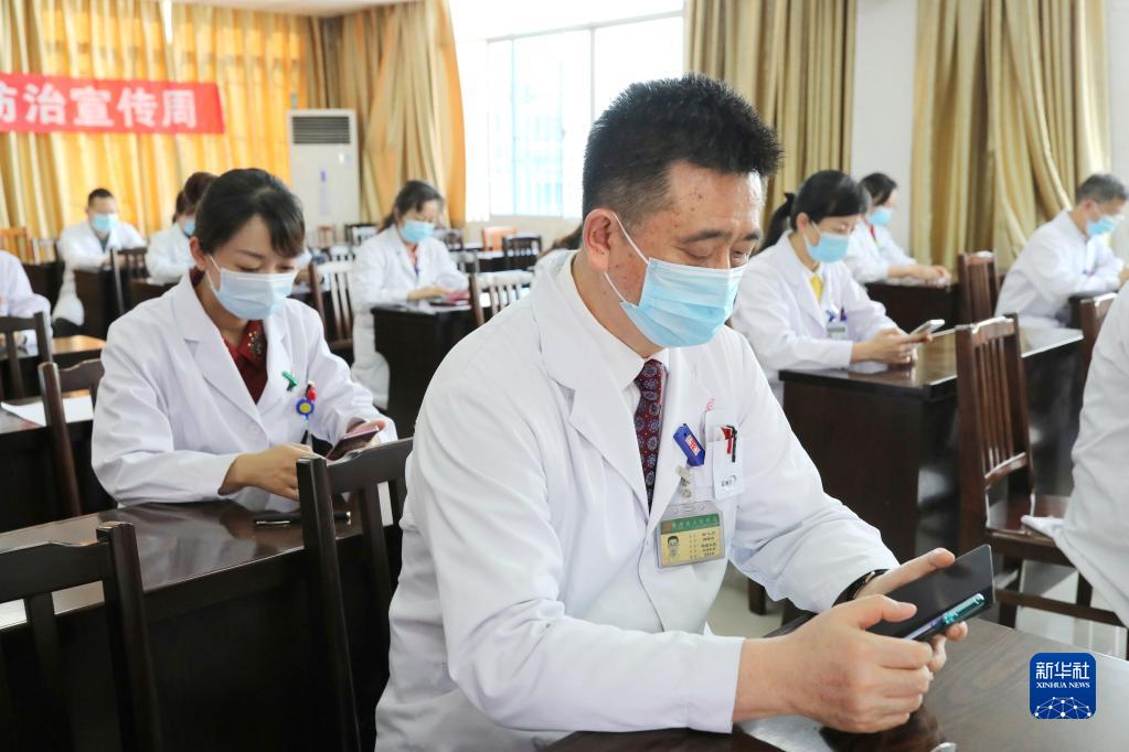 貴州省人民醫院醫生通過(guò)“云診療”系統在線(xiàn)回答患者提問(wèn)(2020年4月16日攝)。新華社記者 歐東衢 攝
