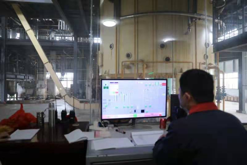 圖為某公司員工在通過(guò)電腦系統觀(guān)察油菜籽萃取情況。(高安市委宣傳部供圖)