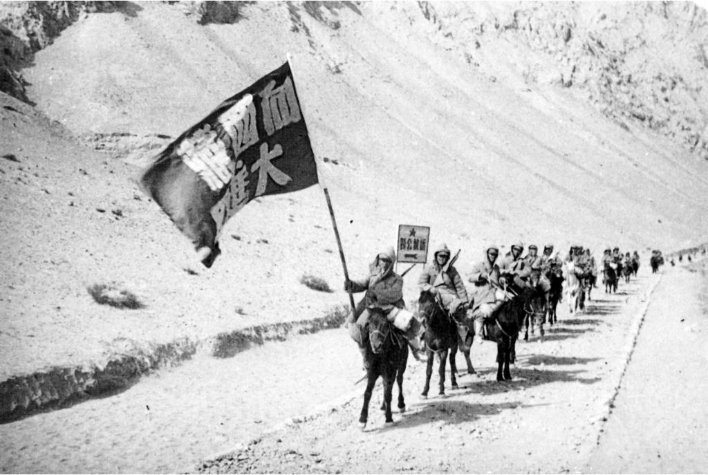 進(jìn)藏先遣連高舉紅旗向西藏阿里進(jìn)軍。新華社發(fā)