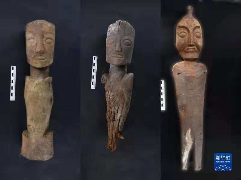 桑達隆果墓地出土的木俑(資料照片)。新華社發(fā)