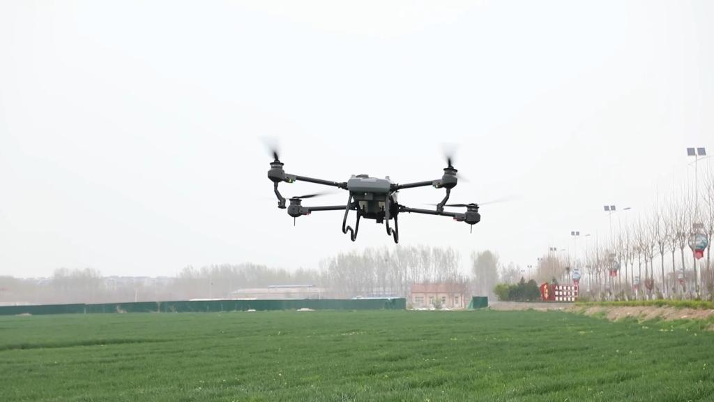 全村1000多畝麥田不到半天就飛防完畢,效率是過(guò)去人工打藥的幾十倍。