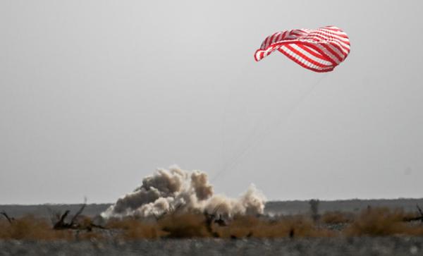 2022年4月16日,神舟十三號載人飛船返回艙在東風(fēng)著(zhù)陸場(chǎng)預定區域成功著(zhù)陸。新華社記者 連振 攝