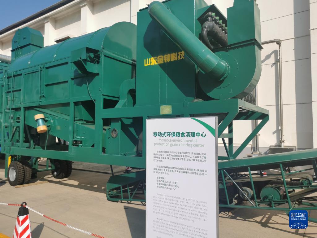 中儲糧濟南直屬庫展出的移動(dòng)式環(huán)保糧食清理中心(2021年9月10日攝)。新華社記者 邵琨 攝