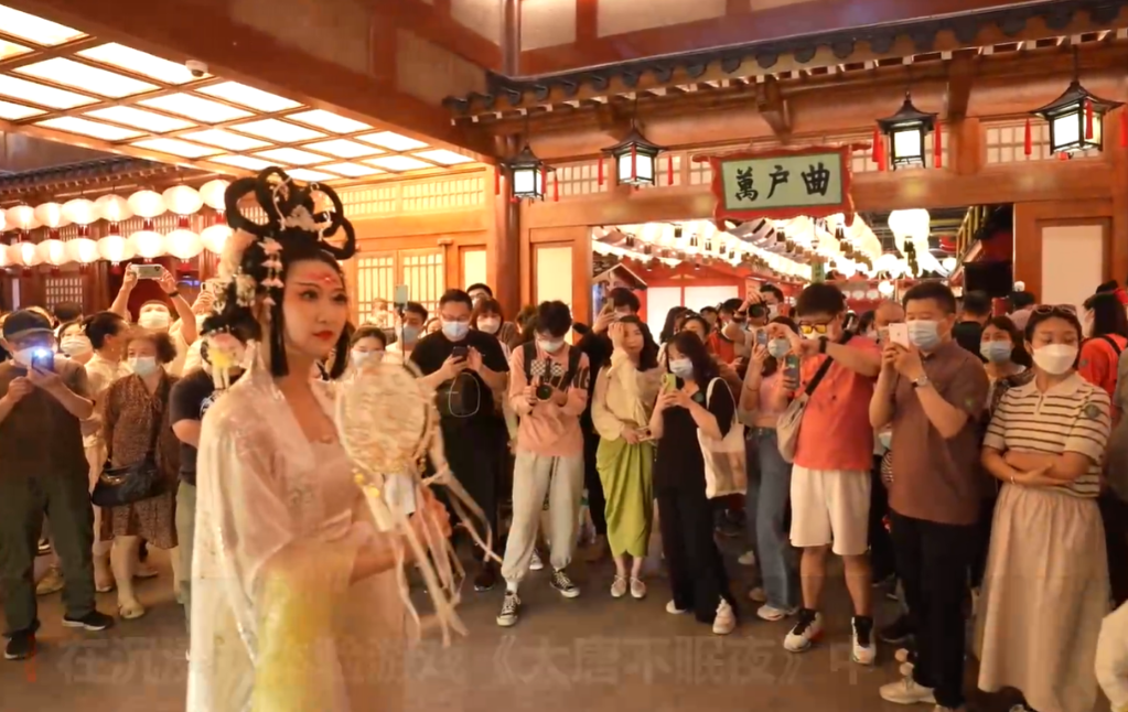穿梭于千年前的唐長(cháng)安城是什么感受?近日,在古都西安,首個(gè)唐風(fēng)市井文化體驗街區“長(cháng)安十二時(shí)辰”對外開(kāi)放。街區融合電視劇《長(cháng)安十二時(shí)辰》IP和唐風(fēng)市井文化,通過(guò)市坊建筑、樂(lè )舞演藝、劇情表演和沉浸式游戲等方式,還原長(cháng)安風(fēng)貌,展現唐代文化,讓游客宛如穿越回千年之前的長(cháng)安城。