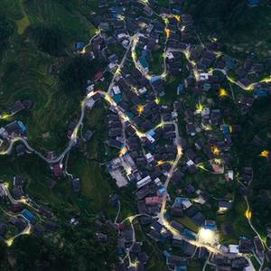 這是廣西融水苗族自治縣桿洞鄉錦洞村夜景(無(wú)人機照片,2021年8月30日攝)。新華社記者 黃孝邦 攝