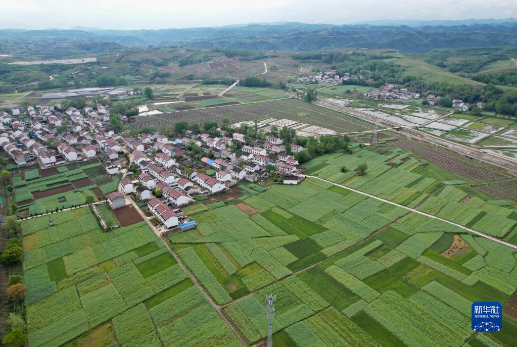 陜西洋縣龍亭鎮生態(tài)農業(yè)園區一景(4月16日攝,無(wú)人機照片)。新華社記者 邵瑞 攝