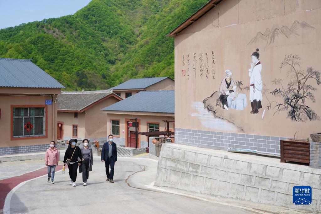 游客在陜西柞水縣下梁鎮老庵寺村游覽(4月21日攝)。新華社記者 邵瑞 攝