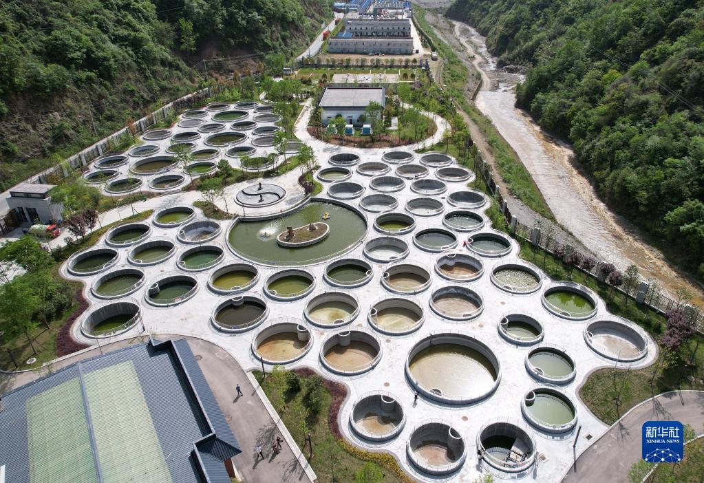“引漢濟渭”黃金峽水利樞紐工程配套建設的魚(yú)類(lèi)增殖放流站(4月19日攝,無(wú)人機照片)。新華社記者 邵瑞 攝