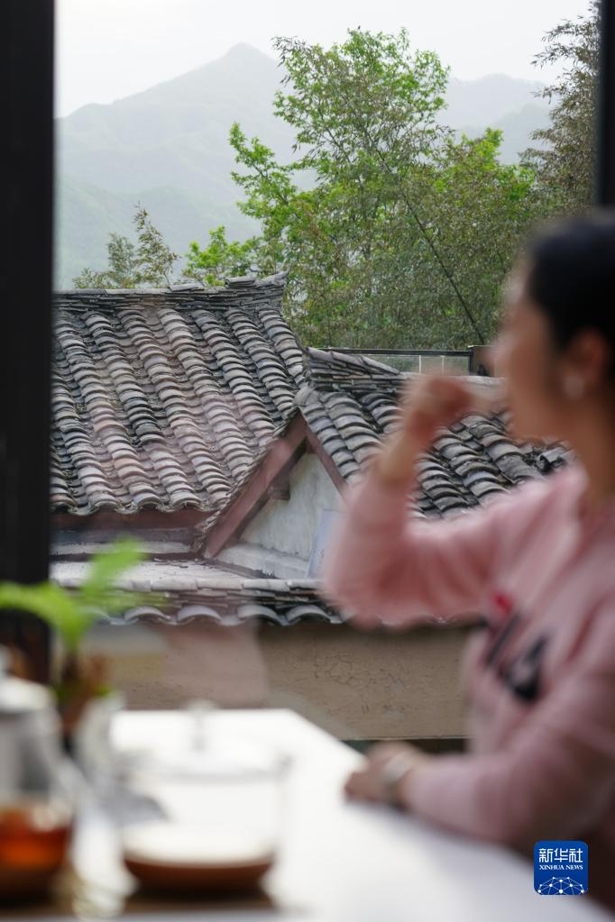 游客在陜西佛坪縣西岔河鎮銀廠(chǎng)溝村一家民宿內喝茶(4月19日攝)。新華社記者 邵瑞 攝