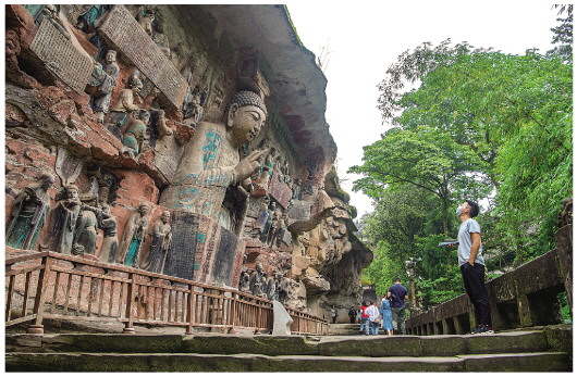 6月11日,游客在重慶大足石刻景區參觀(guān)。記者唐奕攝