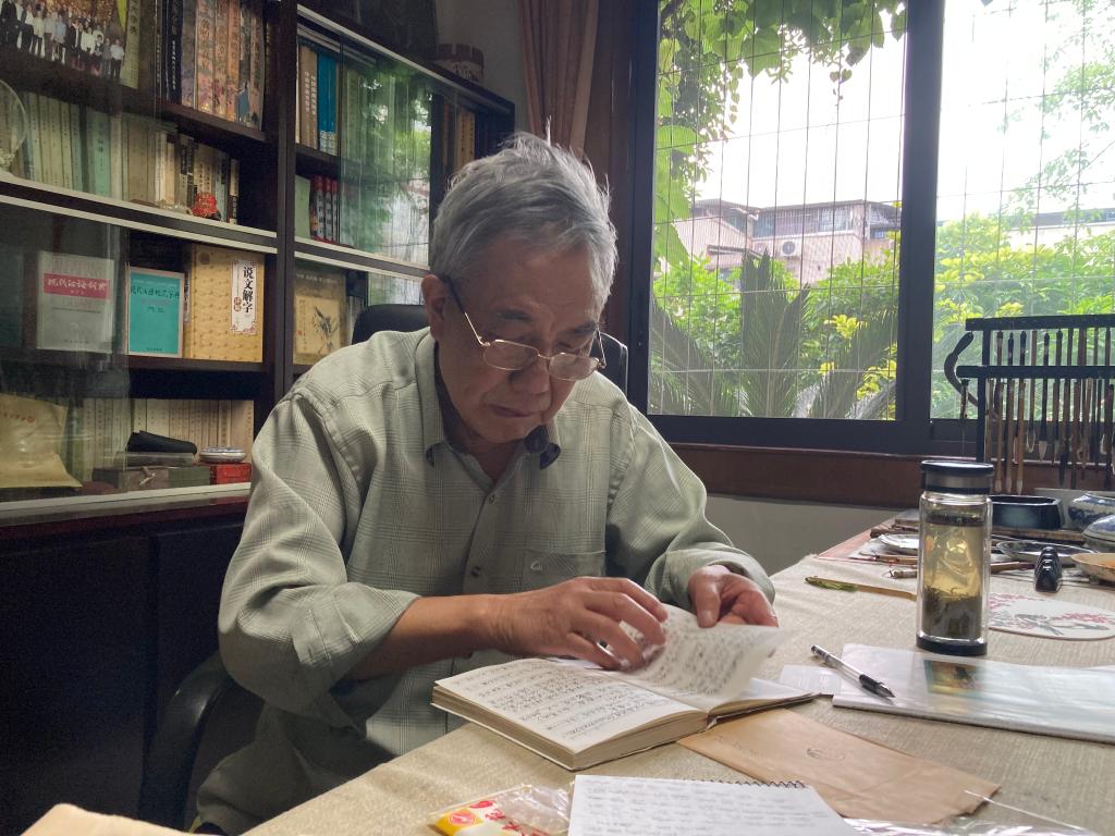 郭相穎接受采訪(fǎng)時(shí)查看當年對石刻研究的筆記。新華每日電訊記者劉恩黎攝