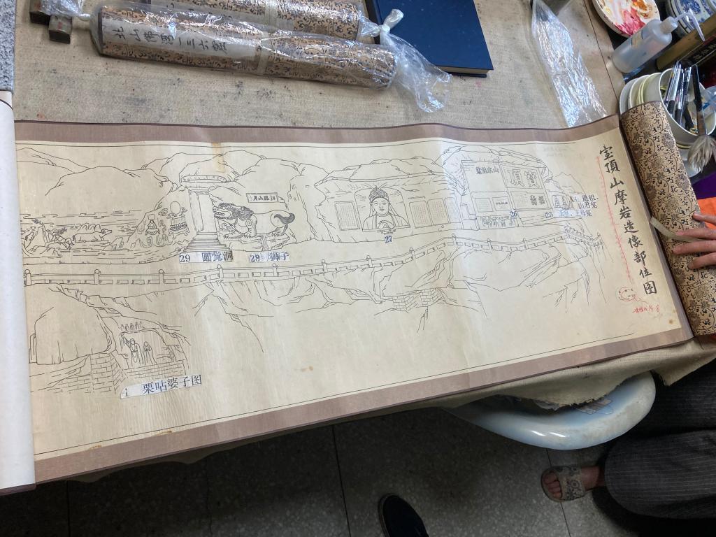 郭相穎所手繪的寶頂山摩崖造像圖原件。新華每日電訊記者劉恩黎攝