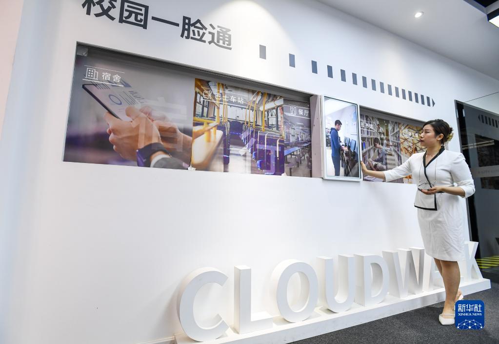 工作人員在南沙云從科技展廳演示“校園一臉通”應用場(chǎng)景(6月15日攝)。新華社記者劉大偉攝
