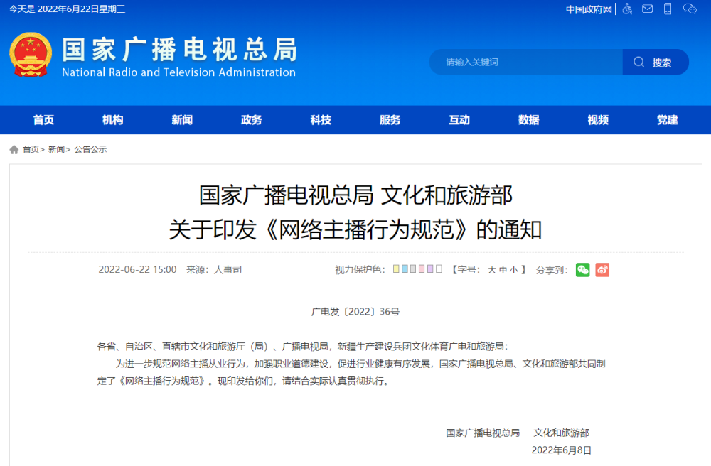 關(guān)于印發(fā)《網(wǎng)絡(luò )主播行為規范》的通知