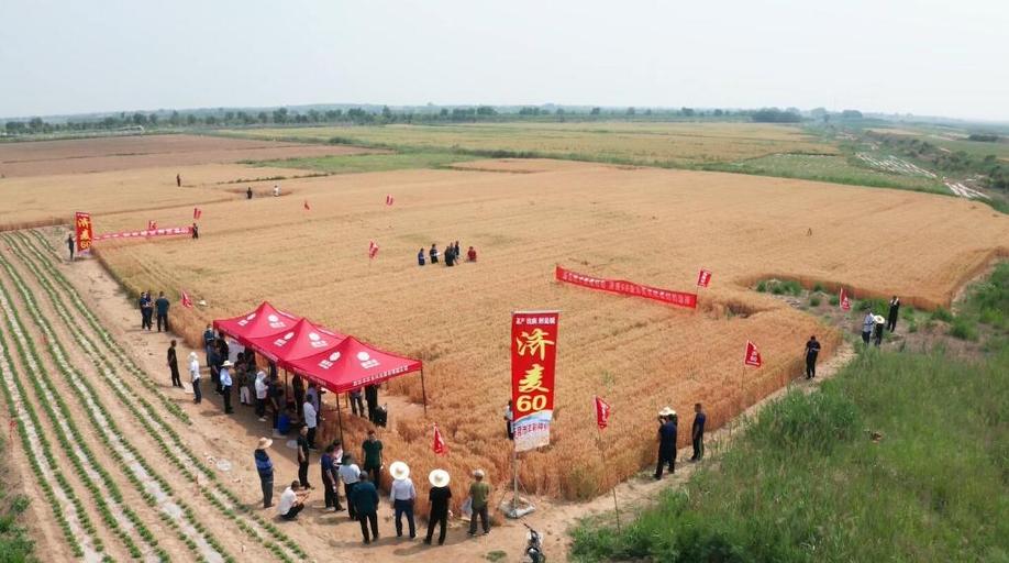 6月5日,在山東省東營(yíng)市墾利區,抗旱、耐鹽堿小麥“濟麥60”正在測產(chǎn)。(山東省農科院供圖)