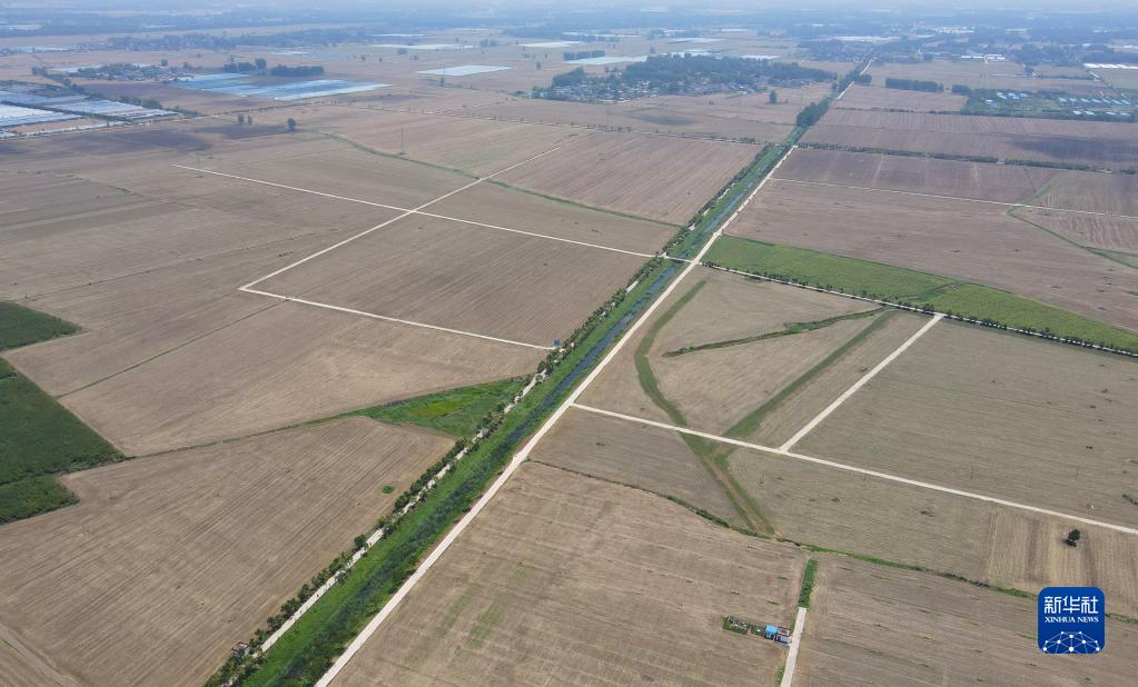 這是6月28日拍攝的安徽省阜陽(yáng)市太和縣淙祥現代農業(yè)種植專(zhuān)業(yè)合作社(無(wú)人機照片)。新華社記者 周牧 攝