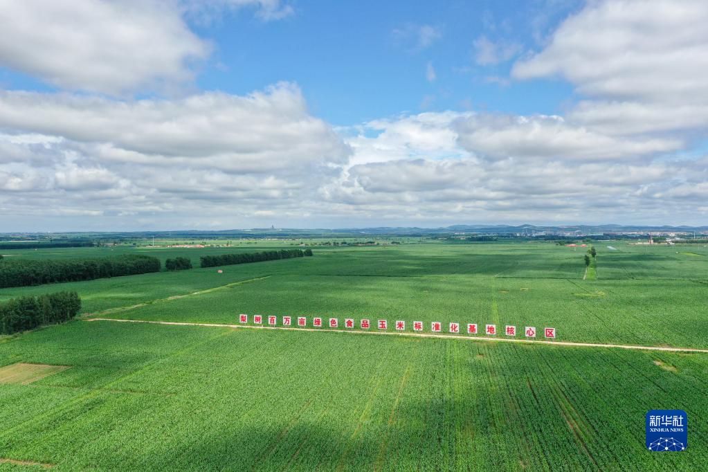 這是在吉林省梨樹(shù)縣國家百萬(wàn)畝綠色食品原料(玉米)標準化生產(chǎn)基地核心示范區拍攝的玉米地(2022年7月7日攝)。新華社記者 張楠 攝