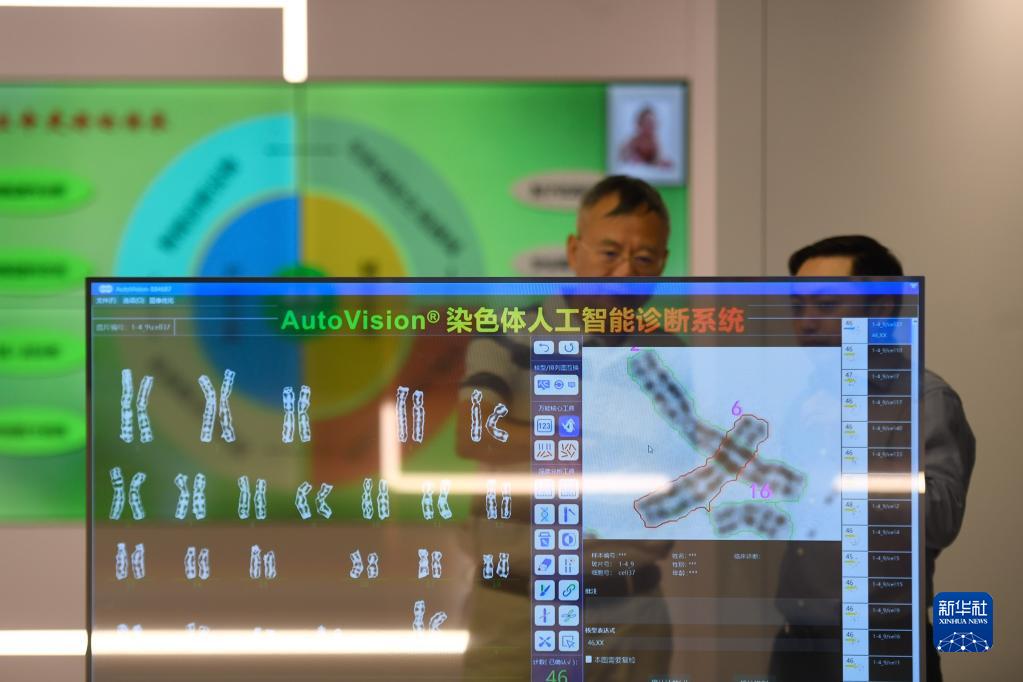 參加中國(杭州)數字·健康小鎮開(kāi)園儀式的嘉賓在小鎮的成果轉化區了解一套染色體人工智能診斷系統(2020年8月30日攝)。新華社記者 黃宗治 攝