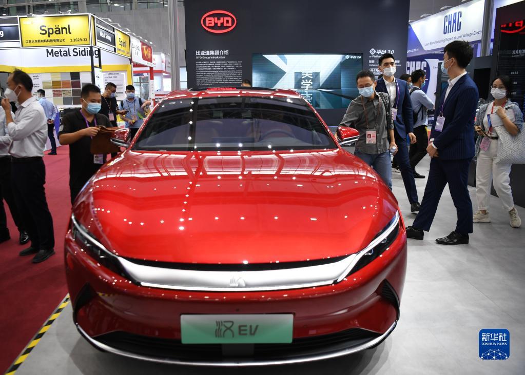 這是在第130屆廣交會(huì )上拍攝的比亞迪新能源汽車(chē)(2021年10月15日攝)。新華社記者 鄧華 攝