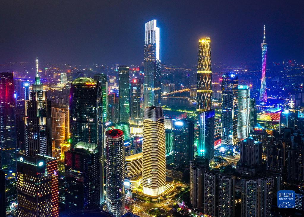 廣州市珠江新城夜景(2020年10月2日攝,無(wú)人機照片)。新華社記者 劉大偉 攝