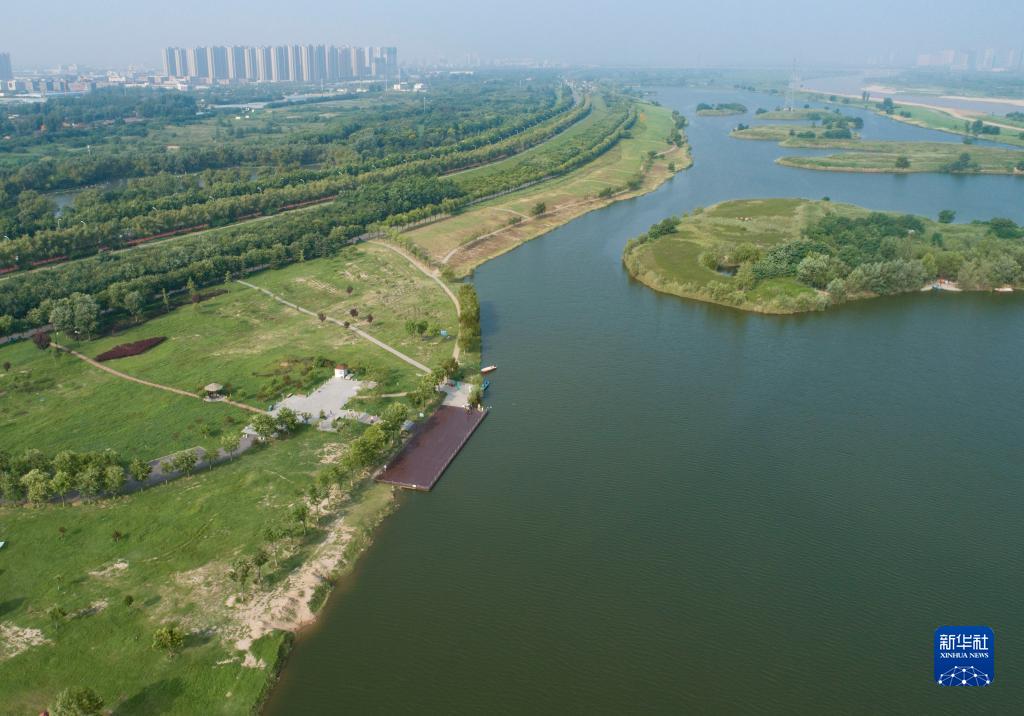 這是2022年7月31日拍攝的渭河西安段風(fēng)光(無(wú)人機照片)。新華社記者 張博文 攝