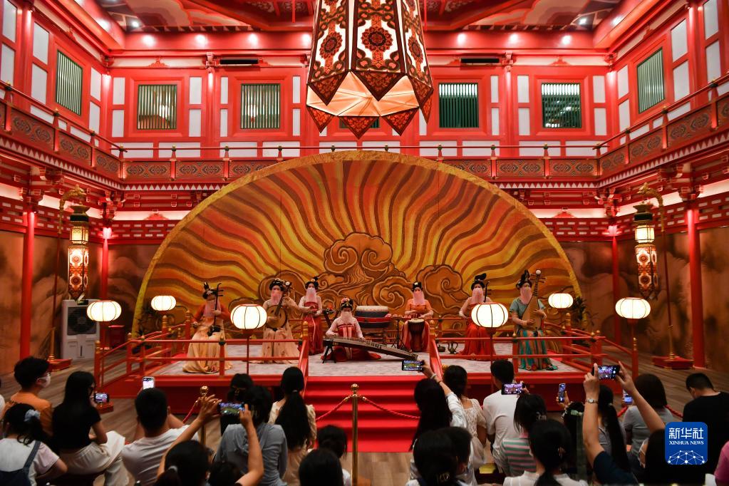 2022年7月16日,演員在西安曲江新區內的長(cháng)安十二時(shí)辰主題街區表演。新華社記者 張博文 攝