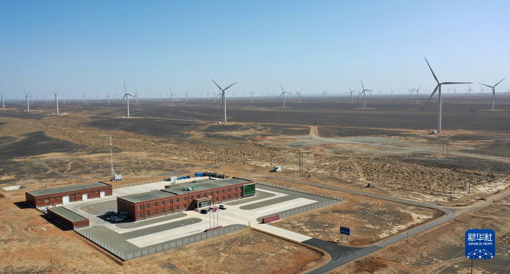 這是2022年4月16日拍攝的甘肅省酒泉市境內的風(fēng)電基地(無(wú)人機照片)。新華社記者 陳斌 攝