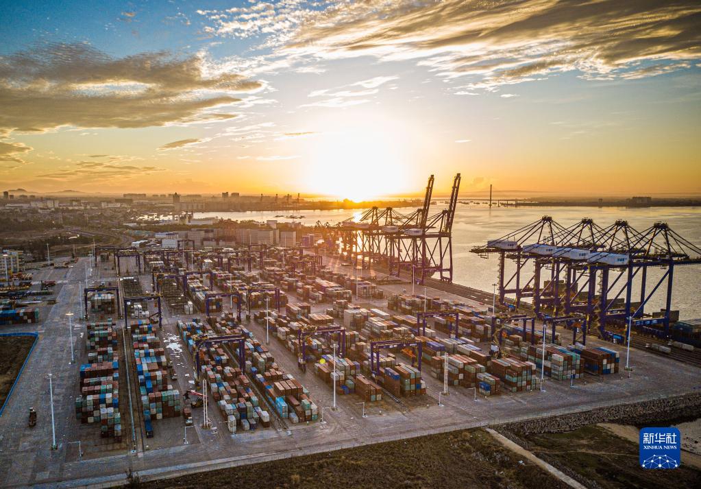 在海南洋浦經(jīng)濟開(kāi)發(fā)區拍攝的洋浦國際集裝箱碼頭(2021年5月26日攝,無(wú)人機照片)。新華社記者 蒲曉旭 攝