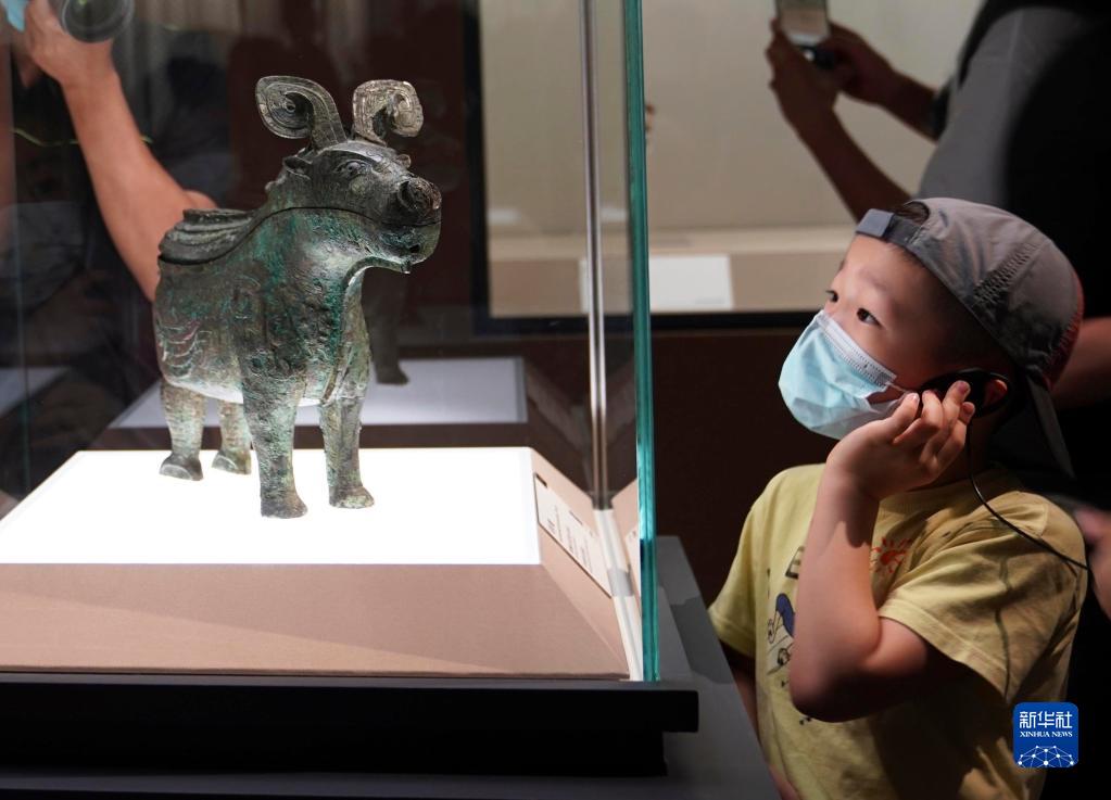 2022年7月30日,小觀(guān)眾在上海博物館舉行的“宅茲中國——河南夏商周三代文明展”上參觀(guān)。新華社記者 任瓏 攝