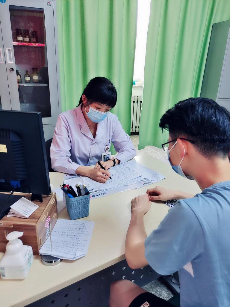 圖為中國人民解放軍北部戰區總醫院過(guò)敏反應科主任柴若楠正在為患者診斷。(受訪(fǎng)者供圖)