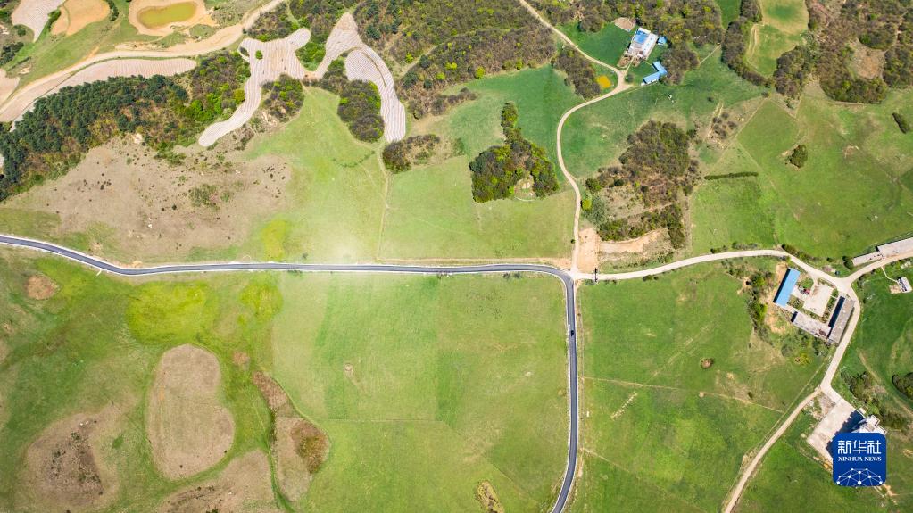 貴州省威寧彝族回族苗族自治縣朱家院子至轎頂山鄉鎮硬化路(2020年4月27日攝,無(wú)人機照片)。新華社記者 陶亮 攝