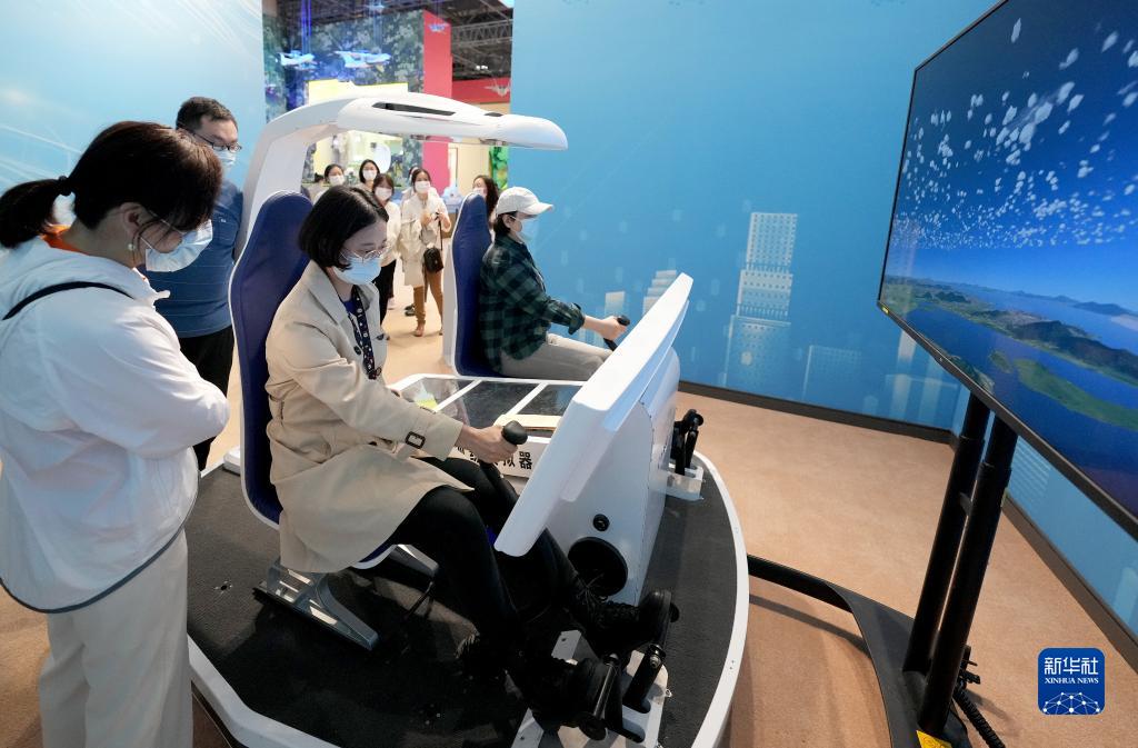 10月7日,觀(guān)眾在“奮進(jìn)新時(shí)代”主題成就展上體驗操縱直升機訓練模擬器。當日是國慶長(cháng)假的最后一天,大批觀(guān)眾來(lái)到北京展覽館參觀(guān)“奮進(jìn)新時(shí)代”主題成就展。新華社記者 王毓國 攝