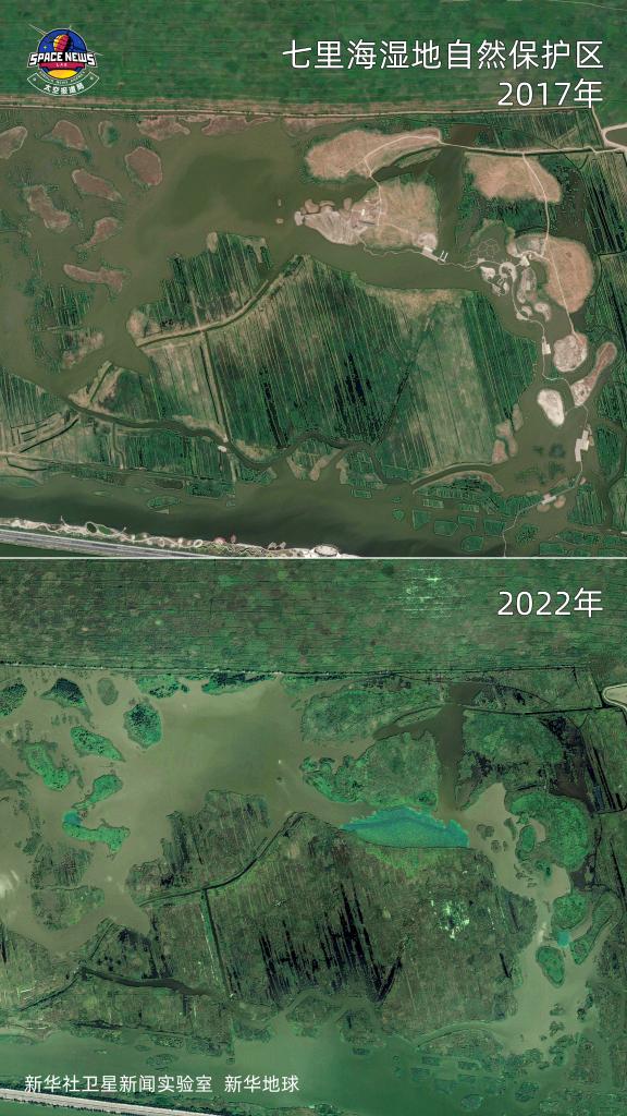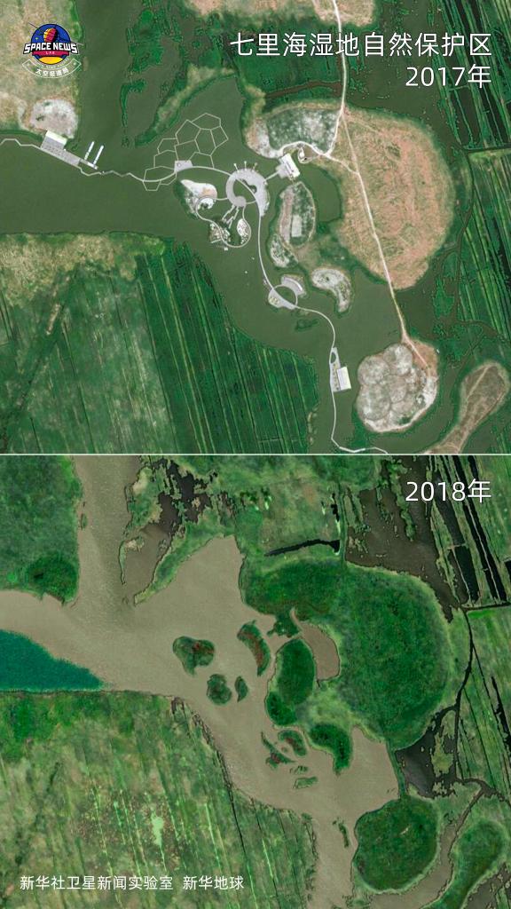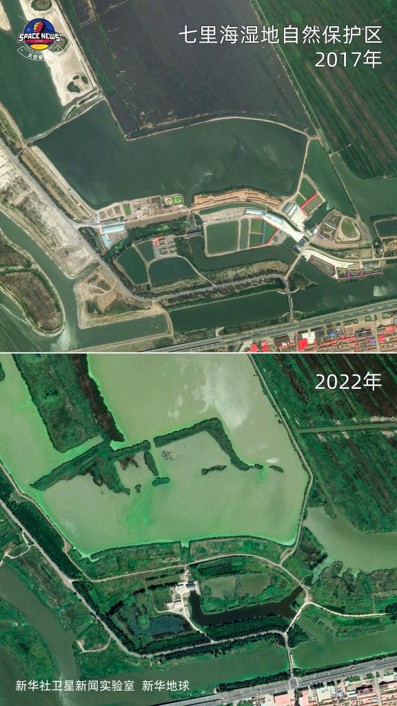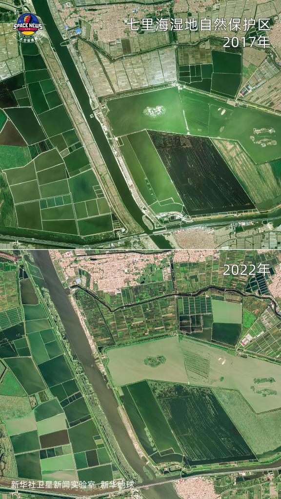 (七里海濕地衛星圖對比)
